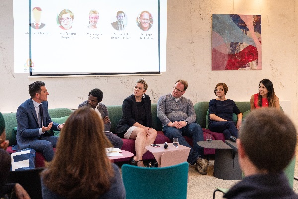 The panel consisted of Tom Oswald (Luxembourg Ministry of Labour), Brian Ballantyne (inclusion and diversity programme manager, Author), Michel-Edouard Ruben (economist from Fondation Idea), Virginie Scuvée (consultant trainer and coach) and Tetyana Karpenko (CEO of The Loupe). Sabina Guerrero of The Job Tailors moderated the panel.