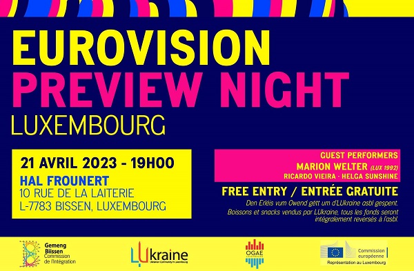 OGAE Luxembourg is organising its annual "Eurovision Preview Night" at Hal Frounert in Bissen, in central Luxembourg, on Friday 21 April 2023 at 19:00.