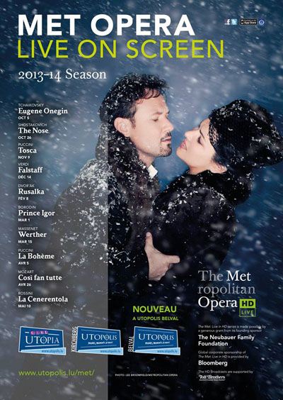 Reservations: Tickets for the new season are on sale at Utopolis Kirchberg (from the cashier) and Ciné Utopia (from the cashier or by tel: 224611). For the first time this year, the 2013/2014 MET will also take place at Utopolis Belval (cashier only).