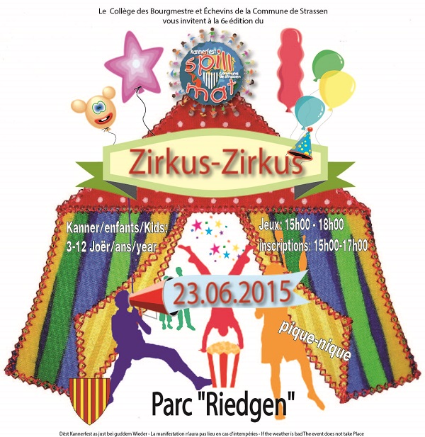 Details: The municipality of Strassen is organising a family event on Tuesday 23 June 2015 (the national holiday) with picnics, food and drink, games, workshops and circus.