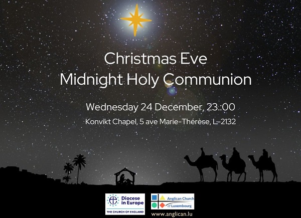 - Christmas Eve (Wednesday 24 December): Christingle Service @ 16:00; Midnight Holy Communion @ 23:00;